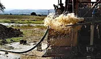 Azerbaycan'da su sondajı şirketi, yeraltı sularını yeryüzüne çıkarmaktadır, su kaynakları açığa çıkarılıyor.